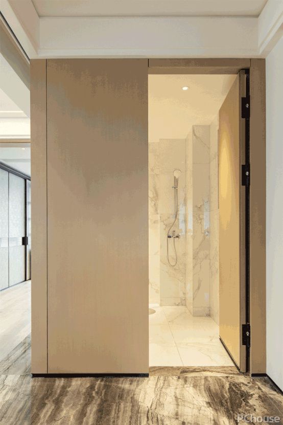 打开,通过门扇不同形式,折叠与平滑来完成不同的空间在同样的时间内所完成的不同的变化,因而产生不同的关系和场景模式。完成在日常生活中所需要的空间感受的变化,设计师通过设计的方法将生活中可能发生的行为场景模式化,合理化融合在结构内。