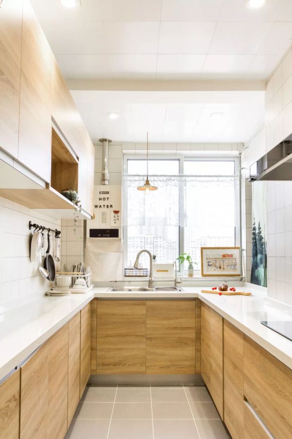 ▲厨房内部是做了U字形的橱柜布局方案,把水槽放在靠窗的一些,灶台上方不做吊柜,再加上简单的配色方案,厨房整体给人一种温馨、明亮的感觉。▲客厅的设计也是以白色为主,搭配了一些木色的家具,电视柜的边上摆放一些绿植,可以让简单的电视背景墙看起来更不会那么单调。▲沙发和茶几的尺寸选择了刚好一家三口人使用的大小,留出更多的活动空间,用来摆放边几、摇椅和斗柜等,让客厅看起来更加宽松。