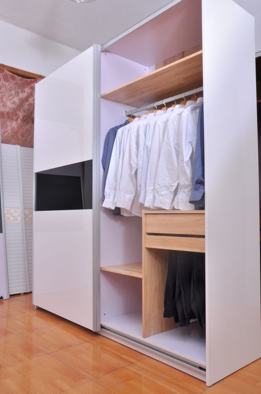 建议可以设计男女各自的储衣空间,男生衬衫一类的可以设计一个独立的小抽屉等,避免挤压起皱。