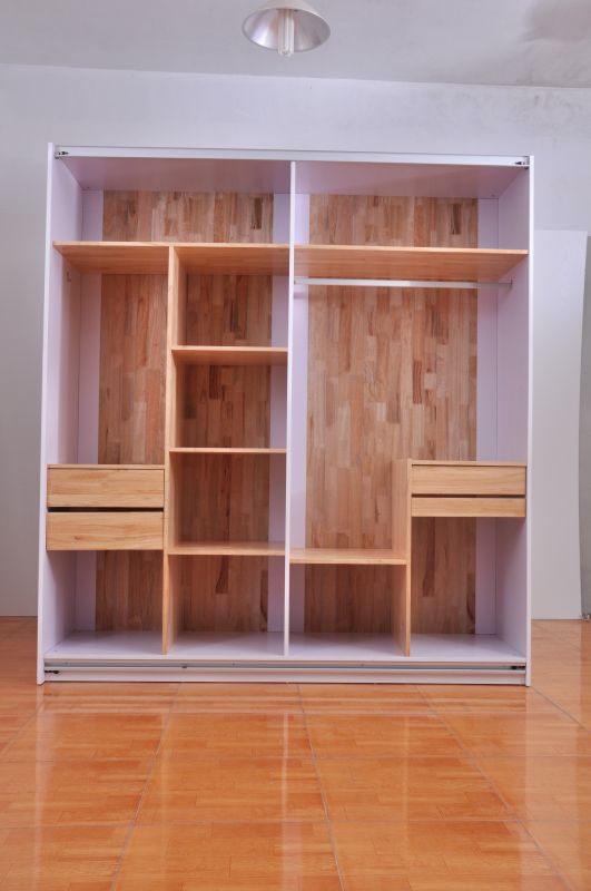 给老年人设计衣柜格局时,可以多做些层板和抽屉,而且层板和抽屉不宜放在最低层或者太高的位置。