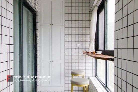 阳台太窄,无法实现多人享受下午茶?也许靠窗的隔板和几张吧台椅可以帮到你。利用阳台纵深,靠窗放置一块隔板,一个吧台式休闲区就诞生了。重点是,要选几把舒适的椅子,椅子和隔板之间的高度要符合你自身的身高舒适度。要是家里收纳空间太少,还可以因地制宜地打造一个白色收纳边柜,让家里的杂物告别无家可归。