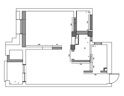 介绍一下这个项目的平面规划,从入门口开始过道的右侧封闭了原有厨房的门洞创造出一个完整的延长面,在延长了入门过道的长度为未来储物的功能尺寸设定,同时,进行凸退层的设计手法,也创造了一个餐桌的预留空间。进入过道后到客厅的右侧透过客厅短墙面的局部拆除,创造出一个主卧室适合的空间尺度以及预留了未来备餐柜的位置。在备餐柜的反面留出了客房(储物间)的空间,并且,在客房与浴室连接的墙面新增了一道端墙为设定浴室开窗与天井产生对流通风预留位,这就是平面布局的重要性,这也是设计师多年经验累积后的设计思考。(注:这些平面的构成都是在反复与客户沟通过后的结果)