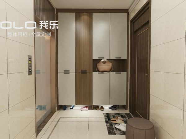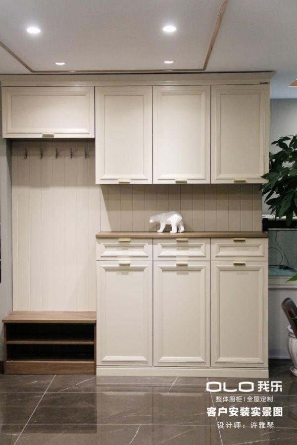 对于很多入户无玄关的小户型,可以赋予玄关更多的收纳功能。如下图,入户玄关太小,我乐设计师刘洋结合业主需求将玄关改成衣帽间,完善玄关收纳和换衣需求。