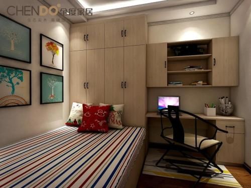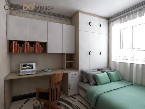 小房间做了卧室,又舍不得储存间功能,这个时候就需要衣柜加卧室再加上书桌的组合功能了。