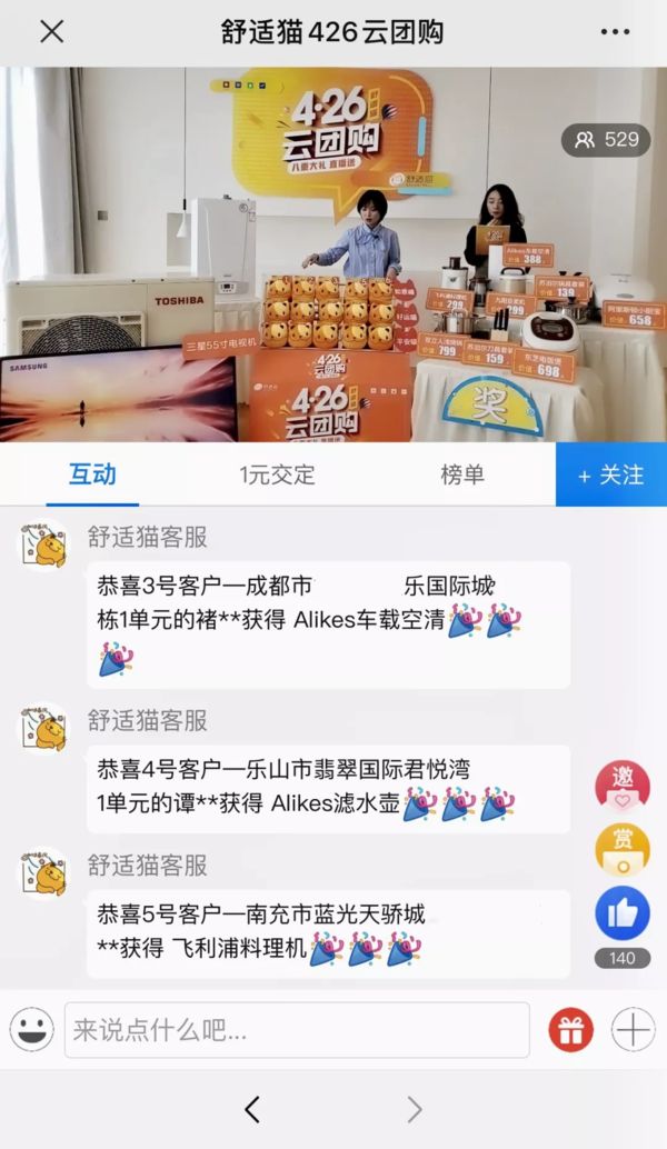 通过直播抽奖的形式,舒适猫各地消费者在购买心仪的产品、享受贴心服务的同时,更享受到了舒适猫送红包、抽好礼的福利活动。