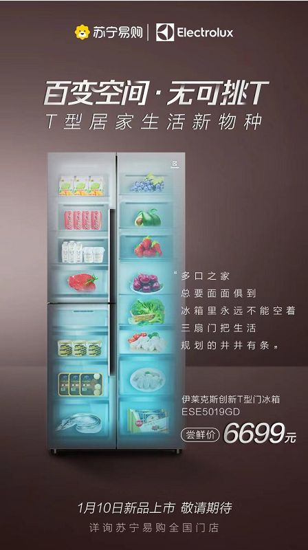 定档1月10日!伊莱克斯创新T型门冰箱震撼首发价仅6699元