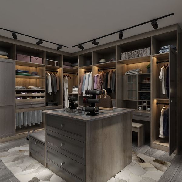 衣帽间以90%开放格为主,方便拿取衣物