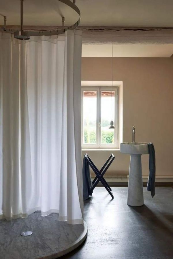 Agape的创意之处在于即使只从天花板悬挂在天花板上的不锈钢系统和滑动窗帘,它也能营造出一种亲切而空灵的氛围:这是Cooper淋浴悬挂系统的简单而又无限灵活的概念。
