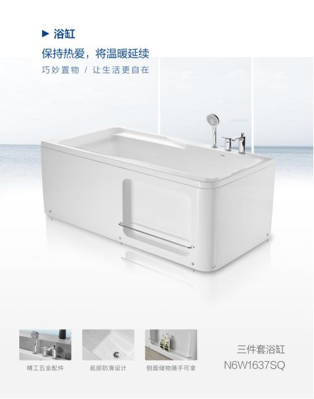 寒冷的冬天,除了恒温花洒来拯救,小编还要推荐一款寒冬必备神器——安华卫浴三件套浴缸N6W1637SQ,设计和功能都让您在大冬天随心所“浴”,现代简约风格,线条流畅,适配多种家居风格。裙边置物功能设计,合理利用空间,沐浴用品拿取便捷。它采用环保亚克力板材,具有良好的抗污性能,既方便日常清洗,又能持久保温,保养方便。大冬天沉浸在浴缸里,使全身的穴位得到刺激,排除囤积的毒素和赘肉,增强血液及淋巴液的循环,既可以让身心得到放松,又可以享受健康舒适的泡澡。