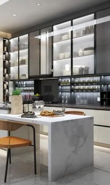大气轻奢的配色通过巧妙的色彩搭配,使得厨房在看似简洁朴素的外表之下折射出一种隐藏着的贵族气质,显示出丰富的魅力,演绎低调的奢华,空间质感更为高级。
