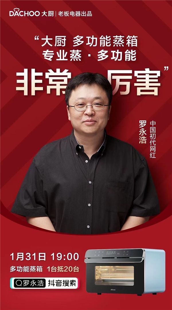 在直播领域,老罗是新晋网红,而在厨电领域,大厨以及它打造的多功能蒸箱,同样是新晋“网红”。