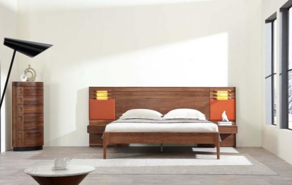 卧室空间的焕新,才是取悦自己的不二方案。黑胡桃木色泽温润,自带天然木香,再加上时尚爱马仕橙的皮质面料加持,整个床看起来格外高端大气。设计上也格外用心。床头灯光与装饰拉手合二为一,驱逐无聊的单调感;两侧床斗悬空设计,合理利用每一寸空间;床体高脚设计,摒弃实木家具惯有的厚重感,符合当下年轻人的审美趋势。