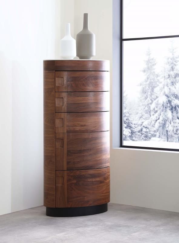 椭圆高屉柜是百强家具马丁系列的第二件获奖作品,所获奖项为2020年度的红点奖。与常见柜体不同,百强家具的这款高屉柜以椭圆形体呈现,柜体宽600mm,占用的空间体积减小,容量却未减少一分一毫;且每个抽屉大小不一,近大远小,很好协调了家具整体的比例效果。椭圆高屉柜的外立面经德国进口的木蜡油浸润,天然的黑胡桃木山型纹理愈发清晰,触感也极为真实。值得一提的是,椭圆高屉柜所有弯弧部分均采用60mm厚的整块美国黑核桃木整料铣型而成,对制作工艺同样提出了极高要求。