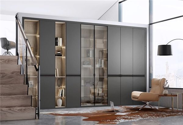 格雷诺系列书柜,简约干净的框架和哑光灰的色调,拥有朦胧柔和的视感和高级细腻的质感,任何角落都能轻松驾驭,柜内浅色的橡木纹和黑色镜面装饰的内嵌式拉手,既丰富了空间层次,又适合书籍、文件的摆放拿取。如果是在墙角处,格雷诺系列书柜搭配一盏落地灯,就是一个温馨的阅读区,若在窗边就更好,阳光透过玻璃映射进屋,文艺小空间就此打造而成。