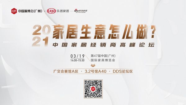 2021年3月19日,CIFF中国家博会(广州)将联合新浪家居在第47届中国(广州)国际家具博览会上举办中国家居经销高峰论坛,以“2021家居生意怎么做?”为题,诚邀全国知名大商、行业专家一起分享营销经验,共同探讨家居零售的突围之路。