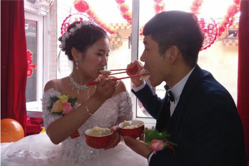 2、在盛饺子必须要盛双数到碗里,一人一碗新郎和新娘都必须要在各自碗里吃双数留双数,一般一碗是6个,8个和12个这样的双数比较合理。寓意也就是要给丈人家留着,不可以都吃光,同时新娘也必须要留着,也不能将家里的东西都走了。