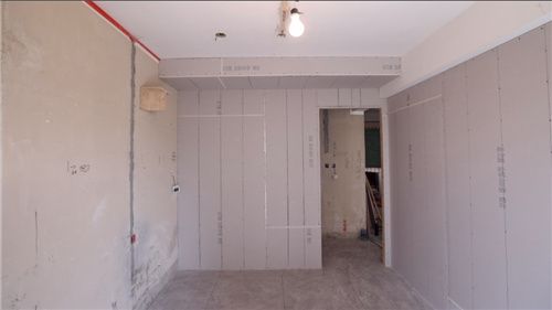石膏板+隔音板打造的卧室隔间,随时拆卸。简单几步,客厅即刻变身~