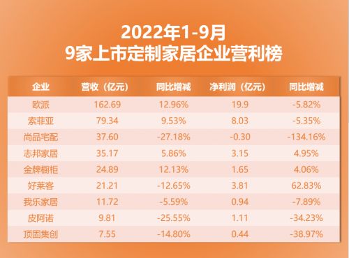 近日,9家定制家居上市企业接连发布了第三季度财报,在营收方面,4家实现同比正增长,5家同比负增长。
