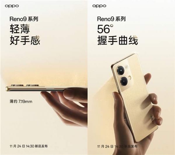 11月18日,OPPO官方微博爆料Reno9系列更多外观和工艺升级细节,并透露该机在轻薄设计方面迎来全新突破。OPPO Reno9系列延续了Reno系列坚持极致轻薄手感的设计理念,此次OPPO Reno9 Pro机身规格为7.19mm薄和174g重,长时间握持使用也舒适无压力。