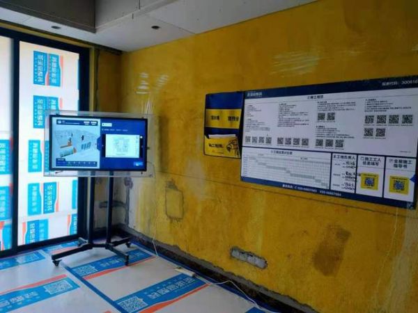 通过试装之后把整个工程方案输入到5G数字指挥屏,在每个施工工地放置5G数字指挥屏,施工工人按照5G数字指挥屏的施工指令和标准进行施工,保障施工工艺标准,连建材都不会存在颜色或者样式的差异,全屋的家具也能做到根据设计方案进行量身定制,真正实现设计效果无偏差。