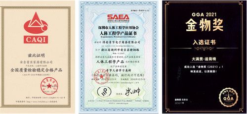 作为一家创立于2013年的智能家居企业,杭州大满冠智能家居科技有限公司的10年发展,可谓是见证了功能性儿童书桌椅这一行业的成长,也一路收获了诸多荣誉。公司早在2017年就被授予“深圳人体工程协会会员单位”,成为儿童学习桌椅行业标准起草单位。2018年,大满冠荣获了“全球年度最佳人体工学至人奖”,成为了双背学习椅的倡导者;并受邀成为深圳市人体工程学应用协会SAEA成员单位。2019年公司旗下多个产品系列荣获“全国质量检测稳定合格产品”认证。2021年,大满冠又将“2021金物奖“收入囊中,并被授予“新匠人新国货促进会·会员单位”。这些荣誉既是对大满冠产品及品质的肯定,也是整个孕婴童行业以及智能家居行业对大满冠非凡实力的认可。