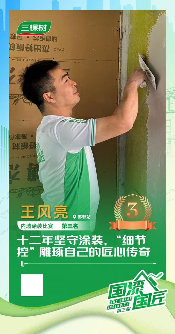 2025三棵树“国漆国匠”大赛邯郸站内墙涂装铜牌匠人王风亮:十二年坚守涂装,“细节控”雕琢自己的匠心传奇