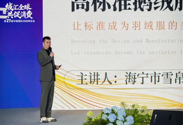 2025年11月4日,第27届中国国际羽绒博览会上,海宁皮革城举办鹅绒服产业蓝图发布会,以行业盛会为契机,全面展现其在高端鹅绒服领域的布局成果与发展愿景。中国十佳时装设计师、海宁市服装协会副秘书长、海宁市赢嘉时尚设计有限公司主理人任敏,海宁市雪帛皮草时装有限公司董事长陈义千,海宁皮城设计商业服务有限公司总经理王觅受邀登台,分别从流行趋势、制造标准、生态构建三大核心维度发表主题演讲,为行业呈现了一场兼具专业性与前瞻性的产业盛宴。