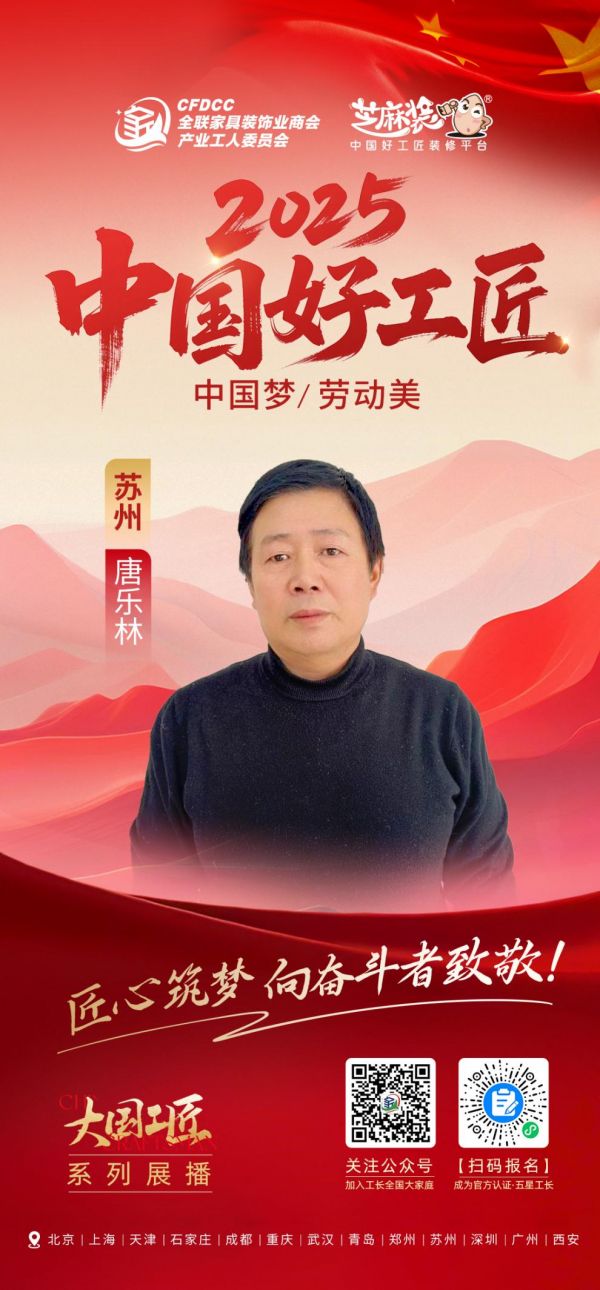 37载寒来暑往,唐乐林从木工学徒成长为行业标杆,用流程标准筑牢品质,用真心服务赢得口碑,用终身学习拥抱时代。他的故事印证了:工匠精神从来不是墨守成规,而是对质量的极致追求、对责任的永恒坚守、对时代的主动适配。