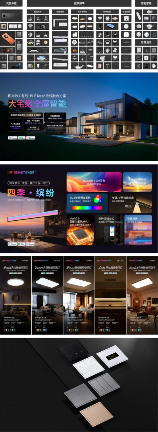 即米智家始终坚持将技术创新与用户体验深度融合。基于PLC有线+蓝牙Mesh无线融合技术打造的全宅智能系统,实现了稳定可靠与灵活便捷的完美统一;研发的“淡彩光”、“宽色温”等健康光环境解决方案,从儿童房健康光到适老化照明,构建了完整的健康照明产品矩阵。