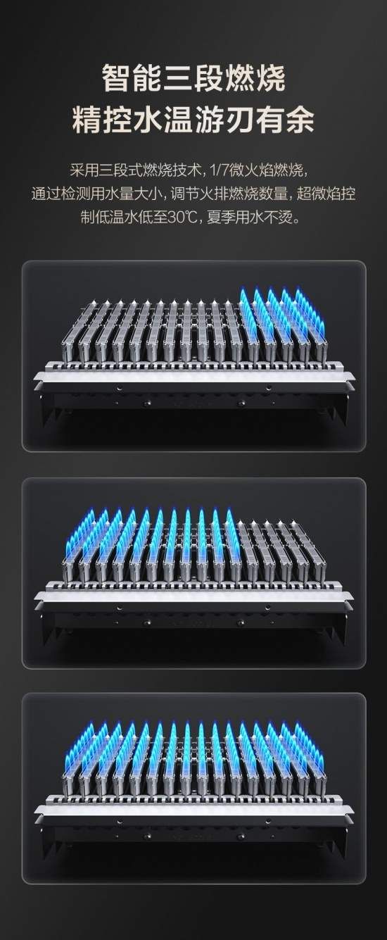 老旧小区水压不稳、用气高峰气压降低,是导致水温无力的常见原因。庆东纳碧安NGW580C内置强劲增压系统,能有效提升低水压下的出水量,保障水流充沛。其核心的智能三段燃烧技术更具巧思,可根据实际用水量及燃气压力,在1/7微火至全段火力间无缝切换。当燃气压力变低时,系统通过精准控制燃烧火排数量,维持稳定加热功率;同时,超微焰控制能实现低温水低至30℃,即便燃气供应不稳定,也能确保水温恒定,夏季用水不烫,冬季温暖充足。