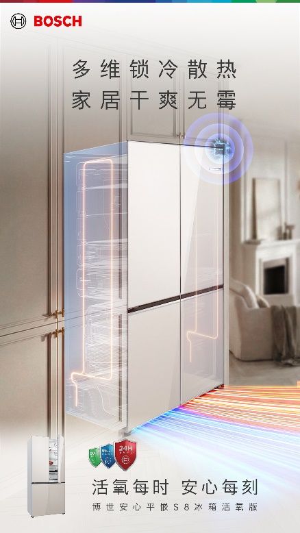 博世安心平嵌S8十字冰箱活氧版,是隐于厨房的安心守护。它以德系精密与人性科技,将健康净化与平嵌美学融于无形。每一次开合,都是对品质生活的致意——无需刻意强调功能,真正的优雅,在于让安心成为日常。选择博世S8 十字冰箱活氧版,即是选择一个更安心、更融合、更从容的厨房起点。