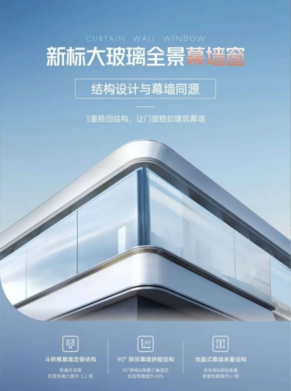 作为行业唯一一家用建筑幕墙标准做家用门窗、用建筑幕墙施工标准安装家用门窗的品牌,新标大玻璃全景幕墙窗以建筑幕墙的制造体系为蓝本,实现了结构设计与幕墙同源、材料配置与幕墙同规、性能等级与幕墙同标,让家用大玻璃门窗拥有了与摩天大楼幕墙同级的安全与耐用。
